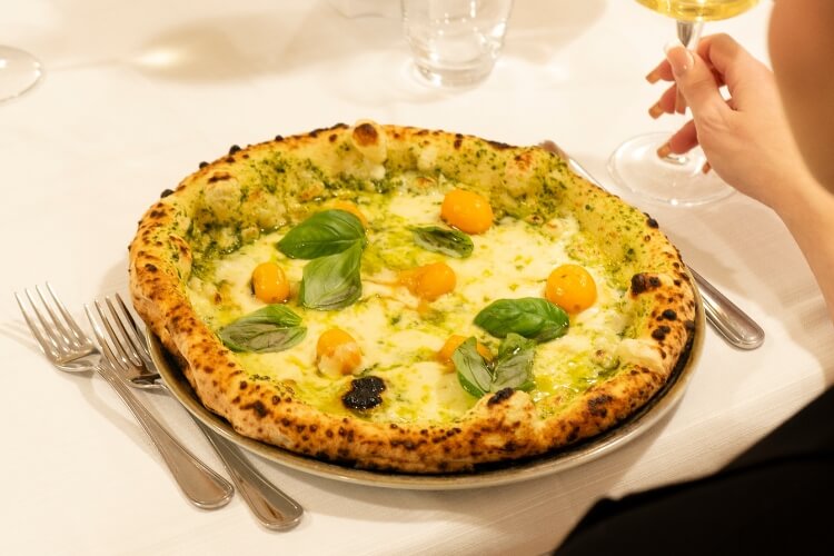 Le nostre pizze hanno una lievitazione di minimo 24 ore e l’impasto è realizzato seguendo la migliore tradizione artigianale napoletana, con un’idratazione superiore all’80% che garantisce massima digeribilità e leggerezza. Utilizziamo solo farine selezionate e macinate a pietra , lievito prodotto artigianalmente ed esclusivamente materie prime stagionali.